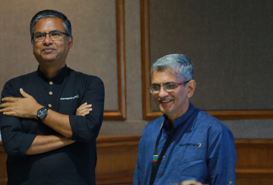 From left: Rajesh Ganesan, CEO of ManageEngine, and Sailesh Davey, Co-Founder & CEO of Zoho Corp, interacting with the media.